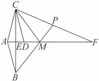 例3 如图,已知△ABM与△ACM关于直线AF成轴对称,△ABE与△DCE关于点E成中心对称,且点E,D,M都在线段AF上,BM的延长线交CF于点P.