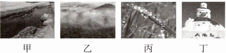 D 扎龙湿地冰雪消融,固态变为液态,发生了熔化,A不符合题意;林都伊春薄雾消散,液态变为气态,发生了汽化,B不符合题意;镜泊湖畔朝露晶莹,气态变为液态,发生了液化,C不符合题意;太阳岛上雪人变小,固态直接变为气态,发生了升华,D符合题意。