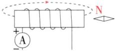2.「2025山东临沂期末」如图所示,桌面上有一枚转动灵活的小磁针,静止时,小磁针______极指南。当导线与电池触接时,小磁针发生偏转,说明通电导线周围存在______;断开电路,小磁针______(选填“会”或“不会”)回到原来位置。