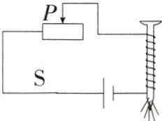 B选项,滑片P向左移动,滑动变阻器接入电路的电阻变小,电流变大,电磁铁磁性增强,能吸引更多大头针,不符合题意。