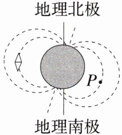 2. [2025 河南郑州期末]如图所示为地磁场的磁感线分布,请用箭头标出磁感线上 P 点的磁场方向,以及小磁针的 N 极。