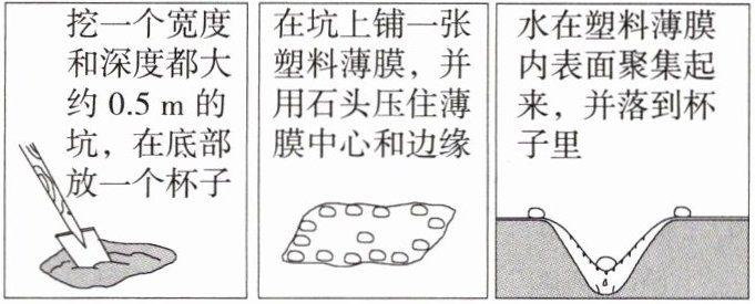 4. 在沙漠中,可以利用如图所示的方法应急取水,此过程中发生的物态变化有( )