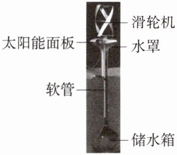 3. 如图所示是沙漠中的一种取水装置,先将装置埋进沙漠地下约2米的深处,利用太阳能面板发电,在自然风的作用下带动上方的叶片旋转,进而把地表上的空气通过软管抽入地下,在此过程中,受上层空气和下层土壤存在温度差的影响,水蒸气在流入底部储水箱的过程中会变为小水珠,以此达到取水的效果。该装置能取到水的主要原因是( )