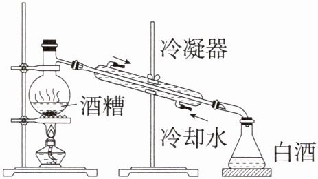 6. 跨化学蒸馏法「2024四川泸州中考改编」蒸馏法在酿酒过程中得到广泛应用,如图所示为蒸馏过程中的原理图,烧瓶内装有含酒精和水的酒糟,在蒸馏的过程中,涉及的物理知识说法正确的是( )