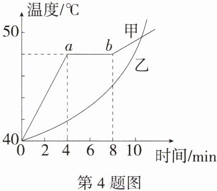 C.在第4min到第8min内,甲没有吸热,乙继续吸热