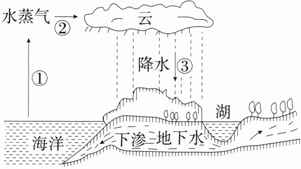10. 「2025重庆渝北月考」如图所示是水循环过程的示意图,下列关于水循环的说法正确的是( )