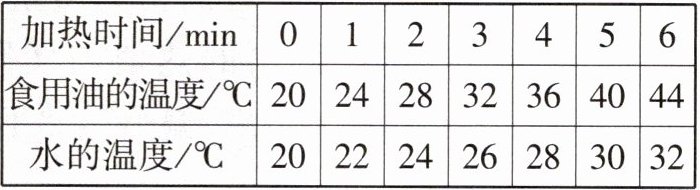 (2)改正错误后继续实验,在此实验中,用相同的酒精灯加热,通过______(选填“加热时间”或“温度计示数的变化”)来反映食用油和水吸收热量的多少,实验测得的数据如表所示,根据表中的数据可知,______的温度升高较快,______的吸热能力较强;