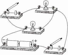 解析用手接触金属螺纹壳和金属触头,灯亮了起来,说明手可以控制灯的亮和灭,所以相当于电路中的开关;灯可以亮,说明电路中有提供电能的装置,因此打开灯罩可以看到另一个电路中的基本元件:电源。
