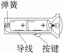 解析 由题图可知,在手电筒中,按键相当于开关,灯泡相当于用电器,干电池相当于电源,弹簧相当于导线,电路图如图所示。