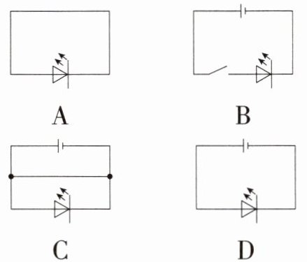 D 由题图可知,发光二极管直接连接到水果电池的两端,故D正确,A、B、C错误。