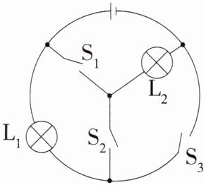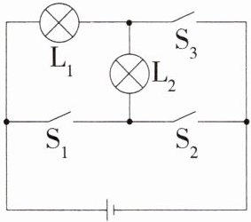 11.「2025江苏泰州期中,★☆」如图所示的电路,若使$L_1、$$L_2$串联,则应只闭合开关______。若使$L_1、$$L_2$并联,则应只闭合开关______;若同时闭合所有开关,会出现______,是不允许的。