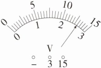 解析 电压表量程为0~3V时,分度值是0.1V,由图可知,指针所指的位置是0.6V;量程为0~15V时,分度值是0.5V,由图可知,指针所指的位置是3V。