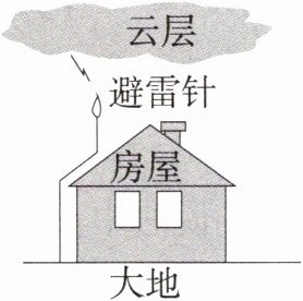 解析 雷电的电流约为 $10^{5}\ \text{A}=10^{5}× 10^{3}\ \text{mA}=10^{8}\ \text{mA}$;云层带负电,所以电子从云层转移到避雷针,电流的方向规定为正电荷定向移动的方向,与电子定向移动的方向相反,所以图中电流的方向是从避雷针到云层。PVC水管与羊毛摩擦后带上了负电,说明PVC水管对电子的约束能力比羊毛强,因此得到电子。