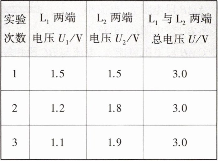 | 实验次数 |$ L_1$两端电压$U_1/V $|$ L_2$两端电压$U_2/V $|$ L_1$与$L_2$两端总电压U/V |