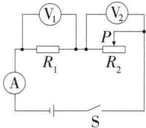 (3)电阻R2的阻值:$R_{2}=\frac{U_{2}}{I}=\frac{10\ \text{V}}{1\ \text{A}}=10\ \Omega$。