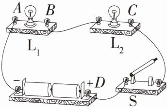 3.「2025 河北邯郸期中」如图所示,闭合开关 S 时,灯泡$ L_1、$$L_2$都不亮。用一段导线的两端接触 a、b 两点时,两灯泡都不亮;接触 b、c 两点时,两灯泡都不亮;接触 c、d 两点时,两灯泡都亮,则 ( )