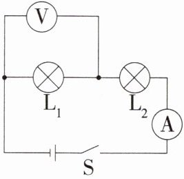 5.「2025 江苏南京玄武期末」如图所示电路,闭合开关后,观察到两灯均不亮,小明用一根导线去检测电路故障,发现故障仅为$ L_2$断路,则检测时不可能出现的现象是 ( )