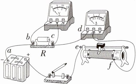 4.「2025 安徽蚌埠期中」如图所示,电源电压为 6 V,闭合开关后,小明发现电流表、电压表示数均为零,他用一根导线检查电路故障,当将该导线两端分别接到 a、d 接线柱上时,发现电流表有示数,电压表示数仍为 0;当将该导线两端分别接到 c、f 接线柱上,发现电压表有示数,电流表示数仍为 0,由此可判断故障是 ( )