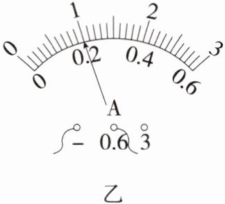 (2)闭合开关$S_{1}$,将开关$S_{2}$扳向____(选填“1”或“2”),调节滑动变阻器滑片 P,使电流表的示数为$I_{1}$,如图乙所示,$I_{1}= $____A。
