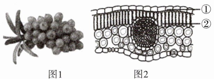 (2)沙棘叶在生物体结构层次上属于______水平。图2为沙棘叶片横切结构模式图,其中②为叶肉细胞,属于______组织,能进行光合作用。