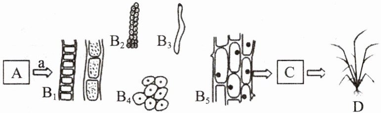(1)若A表示细胞,经过过程a形成$B_1~B_5$几种不同形态的细胞群,则过程a为______。