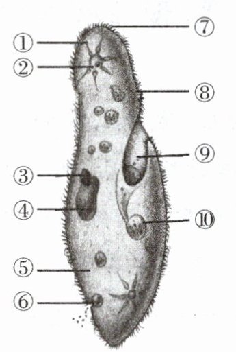 1. 草履虫(如下图所示)体内的食物残渣及二氧化碳的排出分别是通过哪一组结构来完成的? ( )