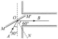 24.如图所示,在一次野外探险中,小明想要利用一块平面镜使一束光水平射入洞中。请你通过作图标出平面镜的位置,并画出反射光线、标出反射角的度数。