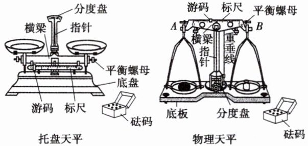 生活中有杆秤、案秤、台秤、磅秤、电子秤等。实验室测质量的常用工具是