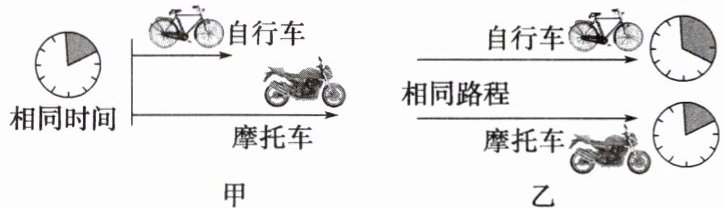 例1 图甲、乙分别表示比较自行车和摩托车运动快慢的两种方法。