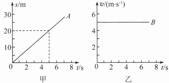 3.$A$、$B$两辆汽车在平直的公路上行驶,图甲是汽车$A行驶的路程s和时间t$的关系图像,图乙是汽车$B的速度v和时间t$的关系图像。由图像可知,两车速度的关系是$v_A$