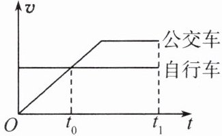 D.$0$~$t_0$时间内,公交车行驶的路程大于自行车行驶的路程