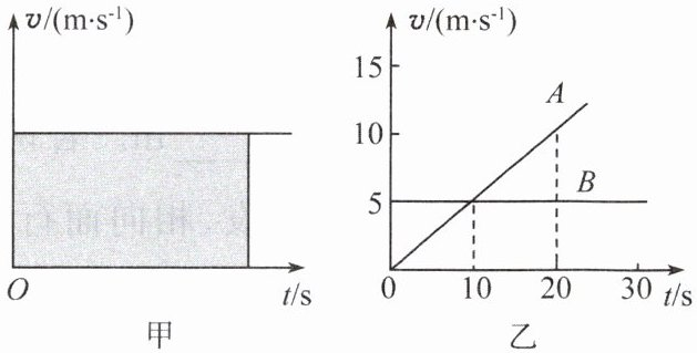 (填写物理量名称);图乙中$A$、$B$两车从同一地点向同一方向做直线运动,第$10s$末,两车相距25