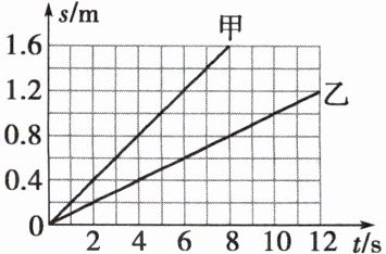 7. 甲、乙两物体同时同地向东做匀速直线运动,它们的$s-t$图像如图所示。由图像可知(