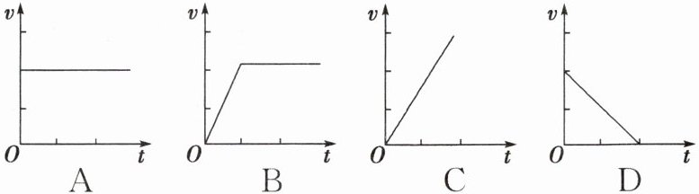 2. 汽车在平直公路上匀速行驶,下面四个图像中能正确表示汽车速度与时间关系的是(