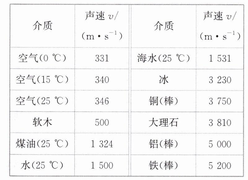 下表中列举了一些介质中的声速,分析表中数据可知: