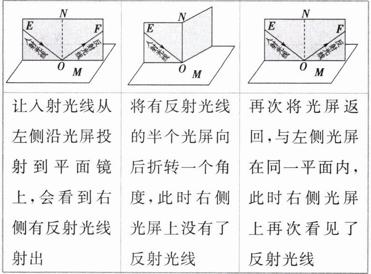 探究一:三线之间有什么关系?(提示:实验时可折转光屏必须和平面镜垂直)