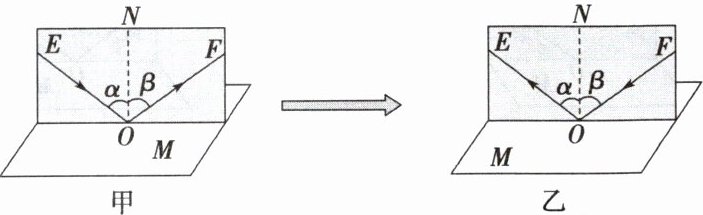 探究三:让光沿着反射光线FO的方向投射到平面镜上,观察此时的反射光线从哪里射出去。