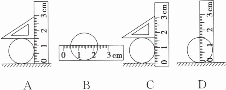 4. 现要测量某圆柱体的直径,如图所示几种测量方法中正确的是(