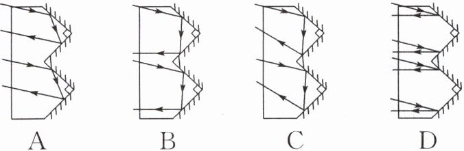 7. 夜晚,当汽车发出的光照射到自行车尾灯上时,司机看到尾灯反射的光,就能及时避让。图中有关自行车尾灯的光路图正确的是(