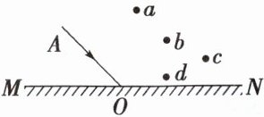 2. 如图所示,MN为平面镜,一束光线沿AO方向入射,经平面镜反射后会通过图中的(