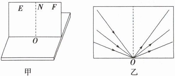 9. 为了探究光反射时的规律,某同学将一个平面镜放在水平桌面上,再把纸板ENF放置在平面镜上,如图甲所示。