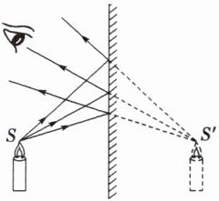 5. 如图所示,眼睛看到的平面镜所成的像不是实际光线