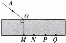 3.如图所示,一束激光$AO$由空气斜射入玻璃砖,折射后从另一侧面射出,其出射点可能是图中的(