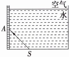 3.如图所示,鱼缸侧壁有一平面镜,请画出光线$SA$经平面镜反射后的反射光线和该反射光线射出水面后的折射光线的大致方向。