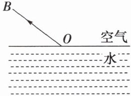 例3 如图所示,$OB$是一束光由水中射入空气中的折射光线,请画出在水中对应的入射光线$AO$的大致方向。