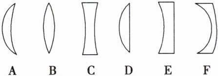 凸透镜:中间厚、边缘薄的透镜。如图中$A$、$B$、$D$。