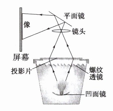 例 2 |如图所示,投影仪是教学中常用的设备。下面关于投影仪的叙述中,不正确的是( )