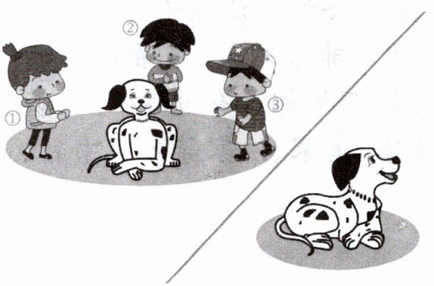 三位小朋友从不同角度观察这只狗,下面的景象是哪位小朋友看到的?(填序号)