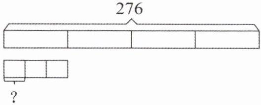 【解析】:首先,由图可知$276$被平均分成了$4$份,那么每份是$276÷4 = 69$;然后,这一份$69$又被平均分成了$3$份,所以所求的一份是$69÷3 = 23$,综合列式为$276÷4÷3$。