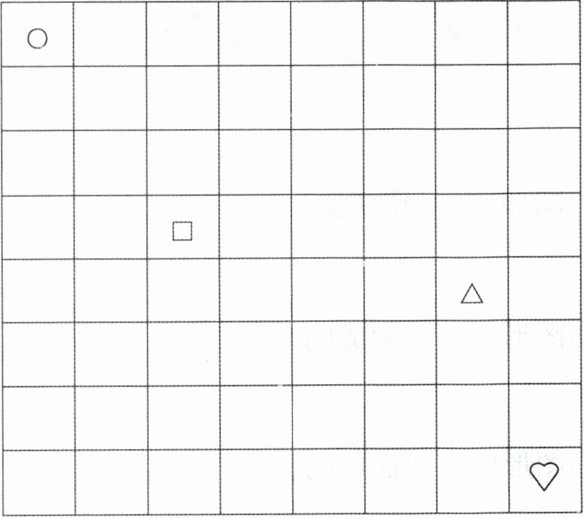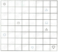 1. ○向下平移5格,□向右平移4格,△向上平移3格,♡向左平移3格。